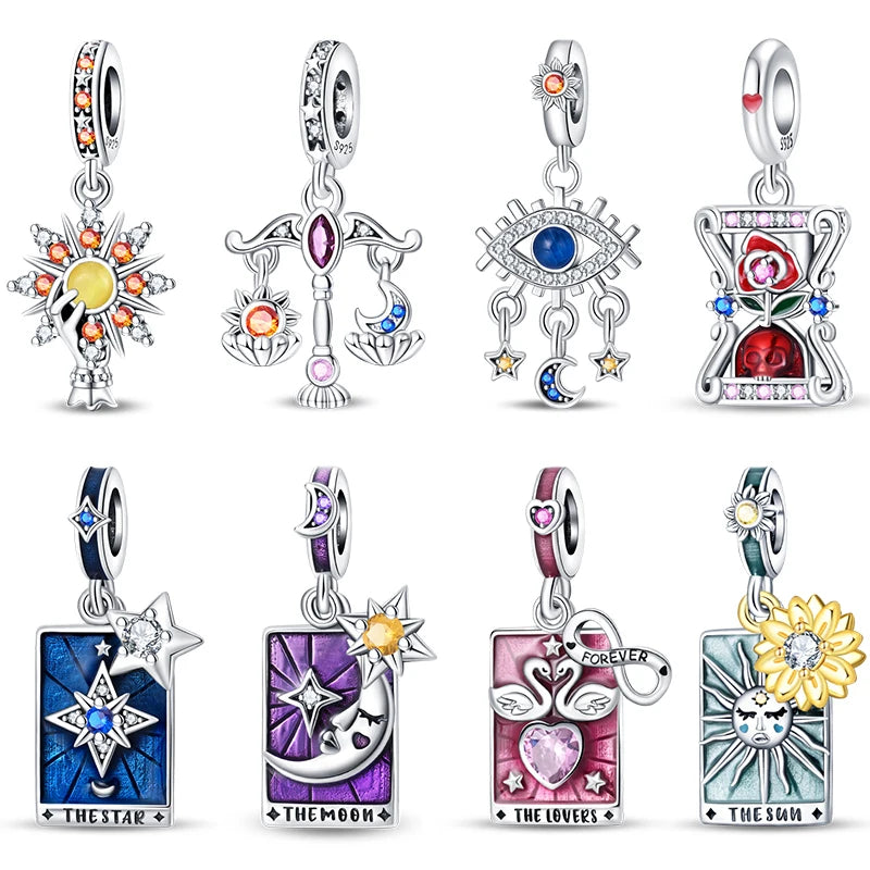 Magic Tarot Series 925 Silver Lovers Stars Moon Sun Charms Beads Fit 3mm 925 Original Bracelets DIY Birthday Jewelry Gift