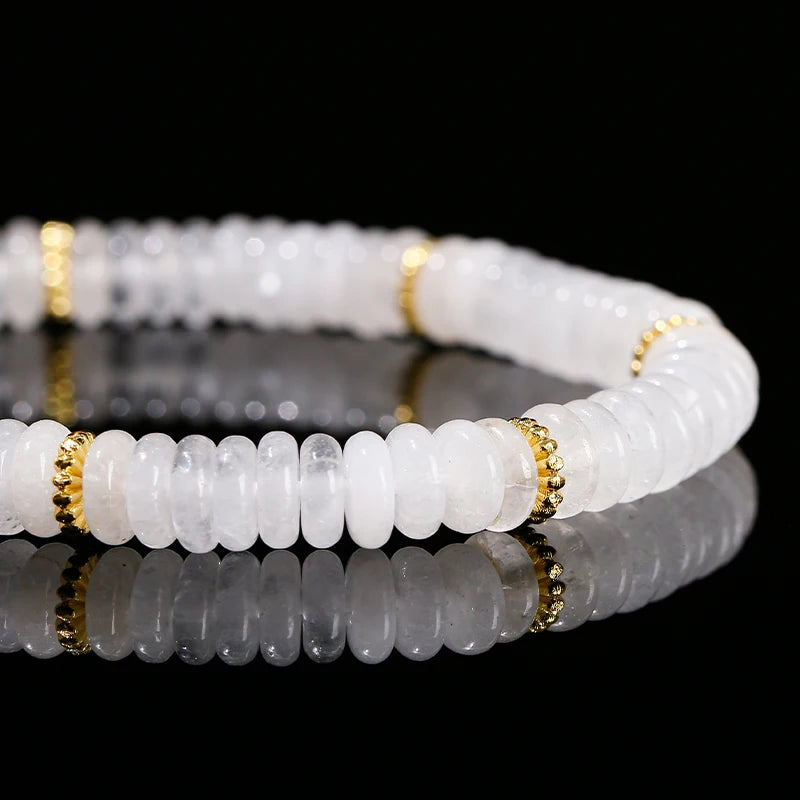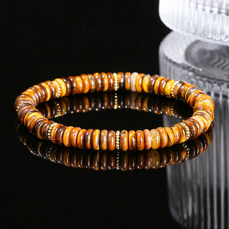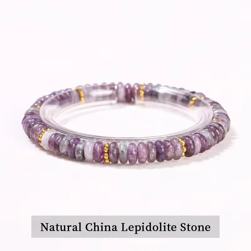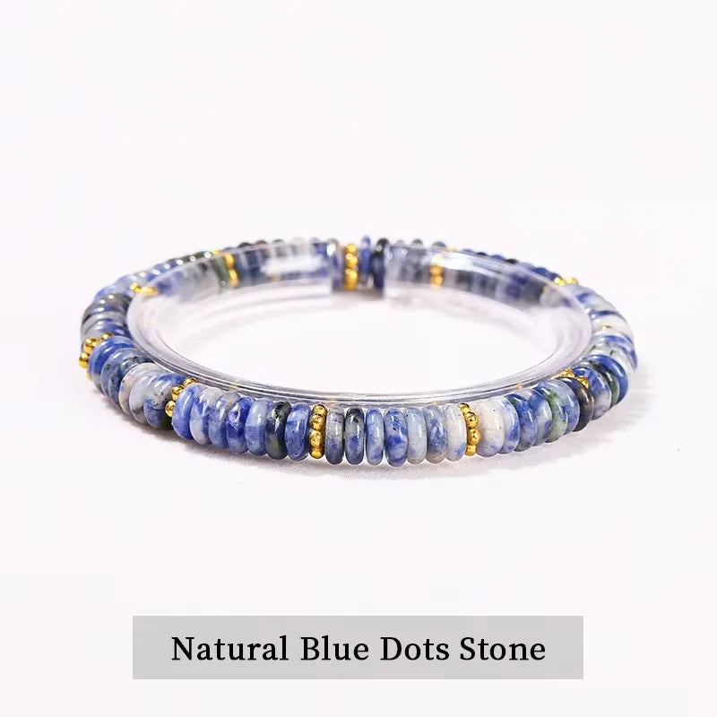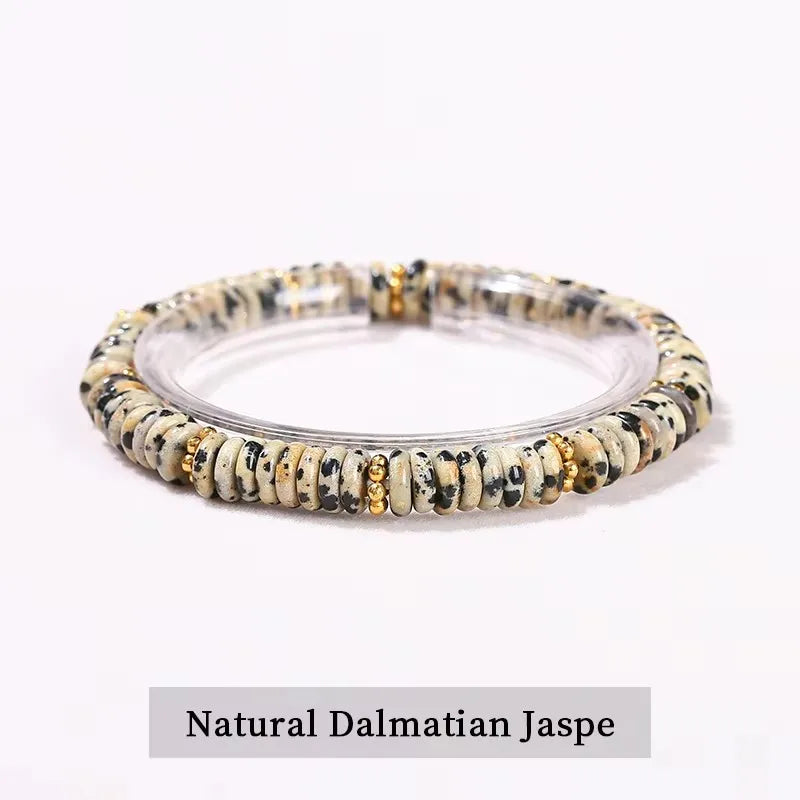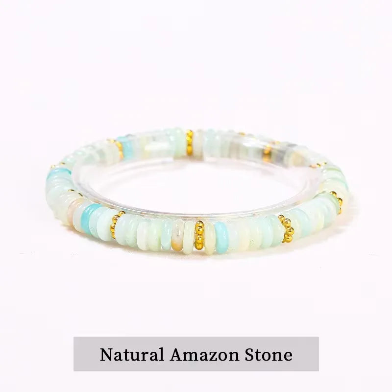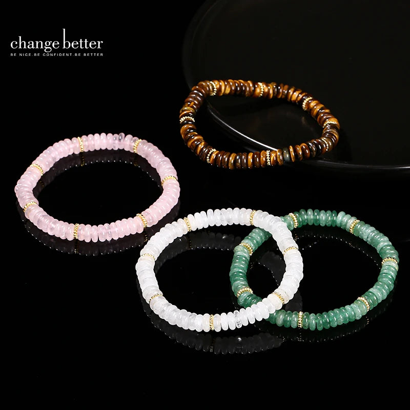 Natural Stone Green Aventurine Pink Quartz Flat Spacer Beads Bracelet Women Men Spiritual Healing Elastic Bracelet Jewelry Gift