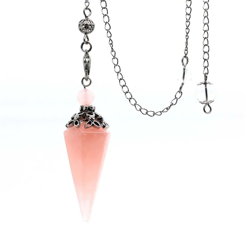 Healing Crystal Hexagon Stone Pendulums for Spiritual Dowsing Divination Natural Amethyst Rose Quartz Pendulum Pendant Pendule
